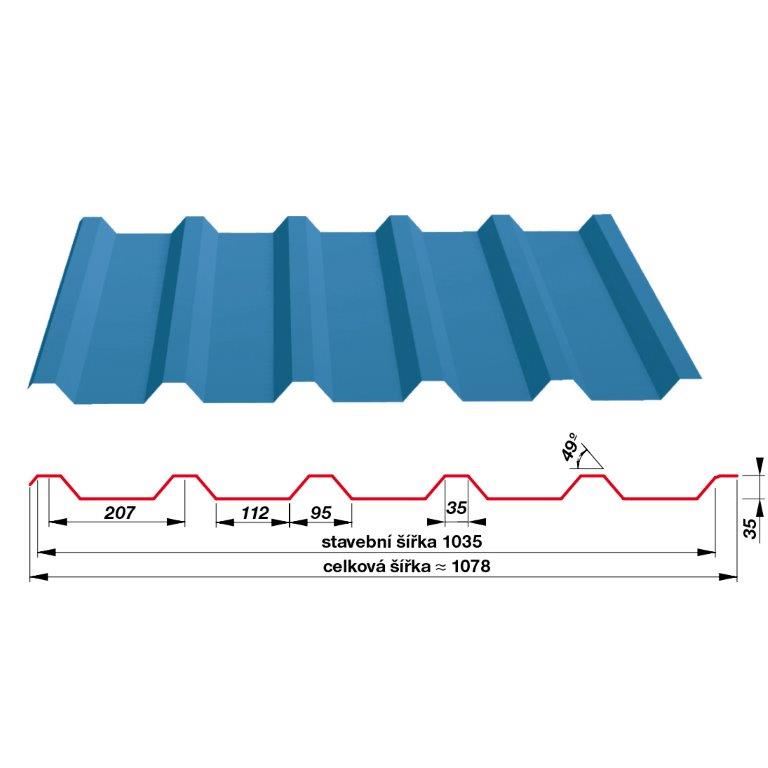 3.Vypočítejte plochu 1ks plechu (délka x krycí šíře) a vynásobte potřebným počtem